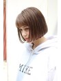 かわいいミニボブ。量を適度に軽くしています。重く見えないスッキリとしたシルエットにしています。人気のヘアスタイルです。カラーはブラウン×ブルーアッシュ。暗めでも重く見えないカラ―です。