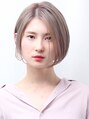 ダブルカラーで透明感たっぷりなベージュカラーに。重めのフォルムで大人の上品さもプラス。ショートボブ、ブリーチカラー、クールな雰囲気。トレンド感をいくつも兼ね備えたオススメスタイル。