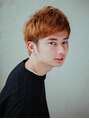 ブリーチ必須のオレンジカラーで夏っぽく明るい印象に!ショートメンズスタイルでもトップを長めに残すことで束感を作りやすくしてボリュームを出しシルエットを綺麗に見せることができます。