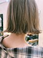 ブリーチ後の色味を見てベージュをON前下がり気味の切りっぱなしボブ顔の長さを短く見せるを見極めてカット
