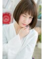 透け感バングと内巻きワンカールで大人かわいい印象に仕上げたナチュラルボブ。目元を印象つけて目力UP。前下がりで輪郭カバーして小顔に見せます。黒髪でモードにしたり、マーメイドアッシュやベージュカラーで肌なじみ良く仕上げてもキレイ☆好感度大です。