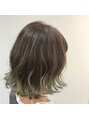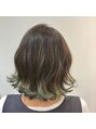 肩上のボブに毛先にグリーンをトッピング^^毛先はブリーチしてあります。巻いたりするとアクセサリー感覚でカワイイですよ♪♪