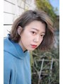 くせ毛のようなパーマに、スモーキーカラー外国人のような雰囲気も醸し出しお手入れも簡単ですよー