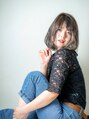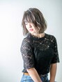 定番のBOBスタイルにウェーブを緩く足して寒色系プラスモノトーンのコントラストをつけたスタイル。