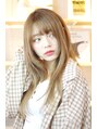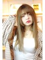 ローレイヤーのロングヘアはツヤ重視!アイラインの上に設定した前髪、口角の下にくるおくれ毛で小顔に見せます。