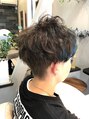 インナーカラーでブルーをいれおしゃれに!マッシュベースでえりあしはすっきりさせました。アップバングにすると長めの前髪でもすっきりします。