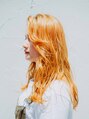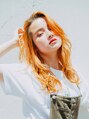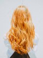 ヘアカラーは夏っぽくオレンジカラーにしています。スタイリングは、太めのコテを使って全体的にウェーブ感が出るように巻いています。前髪をかきあげると大人っぽい雰囲気を出すことができます。