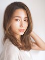 レディな胸上ラインのセミディスタイル。前髪は耳にかけられるくらい長めに設定して、動かしても可愛いアクセントに。ベージュ系のカラーでふんわり柔らかく♪