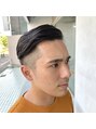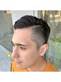毛先に少し残ったパーマを生かしサイドパートでしっかりバーバースタイル