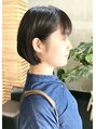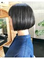 シンプルな顎下ラインのボブスタイル。片方だけ耳にかけたら雰囲気が変わって◎