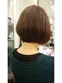 コロンとしたシルエットがポイントのボブスタイル。前下がりベースにする事で襟足は重すぎず、軽すぎないラインに。カラーはブラウンベージュで柔らかさを。