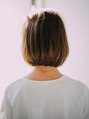 王道なボブスタイル。 バングをセンターで分けることで子供っぽくなりすぎないように。 カラーリングは少しでも動きや立体感の見えるように、ハイライトとローライトを入れました。自然な内巻きになる簡単スタイリングです。【Aluca 蒲田】