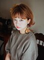肩につかないシ ' ョートボブスタイル★大きく巻いた前髪がキュートに!!襟足の外ハネで遊び心のある可愛いスタイルに仕上がります!カラーは暗くなりすぎない明るめオレンジ系で、耳かけスッキリみせるのもポイントです!