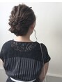 髪全体にアイロンで形をつけて立体的に見えるようにしあげました。編み込みをいれてルーズにほぐすことにより可愛い印象に♪