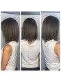 - ハイブリーチ毛にアッシュグレーでカラーリング。美髪ケアもて、ツヤツヤカラーです。