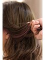 周りの目が気になってハイトーンなColorを楽しめない方に、色はもちろん明るさ具合まで調節できる「ちらちらいと」は世紀末救世主☆8トーンのナチュラルアッシュをベースに、ヴァイオレットをこめかみ中央に。リバースに流すとハイライトがチラッと現れます