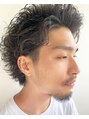 メンズの雰囲気系スタイルです☆パーマをしっかりかけて無造作に仕上げるだけで簡単にクセ毛風雰囲気が出るように仕立ててます。サイドもみあげもちょっと刈り上げるだけでクールなイケてるスタイルになります!