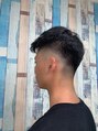パーマをゆるめにかけてまわりは高めに刈り上げてます