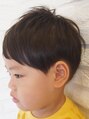 耳周りをすっきりめにアシンメトリーなバングでアクセントを入れたキッズショート男の子らしさを感じれます