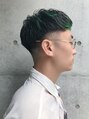 フェードカットで前髪に厚みを出したスタイル。ブリーチ後、グリーンのカラーバターをのせてます。