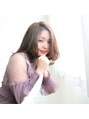 長めの前髪と外ハネカールのセクシーミディアム。ベージュ系カラーで抜け感たっぷりです。顔周りのレイヤーで動きと軽さを表現しました。