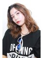 明るめのハイライトを混ぜたカラーと根元付近からのウェーブ、ラフなかきあげバングでクールな印象のスタイルです!