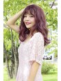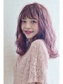ハイライトをたくさん入れてトーンアップし、ピンクラベンダーのマニキュアで全頭をカラーしました。ローレイヤーのミディアムベースでバングはラウンドでシースルーにカットしました。透明感がかわいいスタイルです。
