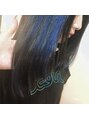顔まわりにネイビーのメッシュを3枚ずつ☆ネイビーって珍しくないですか?秋のトレンドカラーで最新スタイルですね(*^ω^*)もちろんインナーカラーにしても絶対かわいいカラーです★