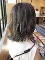 グレージュのボブスタイルです!ブリーチで細かくハイライトを入れる事によってスタイリングした時に立体感がでで透明感のある外国人風カラーです☆