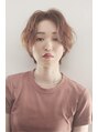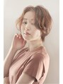 ショートボブ。あえて前髪は作らず、センターパートで。パーマをかけてアンニュイな感じに。骨格矯正にも向いてます。