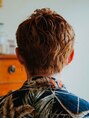 サイドはツーブロックのすっきりショートスタイルです。ハイトーンなのでワイルド感もプラス◎ハチ張りの方にもおすすめで、かぶってくる上の長さは骨格に合わせて調整してます。長さがあることでパーマ風の動きのあるスタイリングが出来ちゃいます!