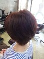 還暦過ぎですが素敵な大人のお客様です。カラーはオレンジ系。カットはショートボブスタイル。頭皮が過敏でヘアカラーで刺激を感じる方はノンジアミンカラーや香草カラー等低刺激カラーがございます。