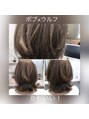 旬スタイルのウルフ×ボブ=かわいい♪重さを感じ無いように、カラーはシアーグレージュで透明感をプラスしました!前回のハイライトが良い感じにアクセントになりGOOD♪アフターケアはアフィアコネクトトリートメントでツヤ髪に!