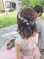アレンジに沿ってヘアードをつけたふわっとハーフアップです