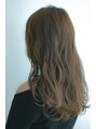 大きく巻いた緩やかなウェーブのスタイルです。色も黄色っぽさが目立たないように、ラベージュで消しながら風合いのある感じに仕上げてます。