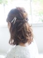 可愛いすぎないなみウェーブのねじりアレンジ☆結婚式やパーティーなどでおすすめのスタイル☆かっちりしすぎずシンプルで可愛いナチュラルスタイル☆【大島】
