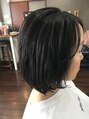 切りっぱなし風のボブ。前髪にパーマをかけて扱いやすく。