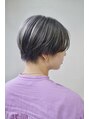 ダブルブリーチにシルバーグレーのショートボブです☆ベースを明るくして白っぽく抜けていくシルバーグレーに◎えりあしスッキリでコンパクトなハンサムショートは暗めカラーにもおすすめです☆