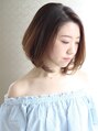 前下がりボブの毛先をワンカール内側に入れることでシャープになりすぎず柔らかな印象のスタイルに。