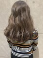 細めのハイライトを全体にいれて、ケアカラーでアッシュグレージュをオン!!ケアカラーはダメージレスでツヤもとても出ます!