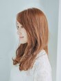 無造作な重ためのロングヘアです。ロングで重ためですと暗い印章になりやすいですがカラーをオレンジ系にしている為、抜け感をだしています。