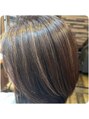 切りっぱなしボブがベースですが、首に沿ってくびれが出来るようセニングやレイヤーを入れ軽い質感にしたデザインです。カラーは明るくても艶っぽく見えるアッシュベージュです。前髪を薄めに作り季節感を大切に作りました。