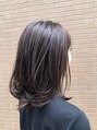 切りっぱなしボブにトップに少しレイヤーを入れるスタイル。カラーリングは、アッシュグレージュに細めのハイライトが入ってます。