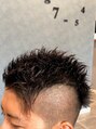 サイドからバックにかけてガッツリ2ミリで刈込み、トップは遊び心と男心をくすぐるデザインに!!一人一人に合ったデザインを是非!!