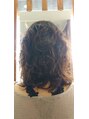 ストレート毛でぺたっとなりやすいので、動きとボリュームが出せて、お手入れが簡単なエアウェーブで、パーマをかけました。