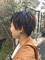 【お客様スタイルです】バックのボリュームが気になる人におすすめのショートボブスタイル。トップを軽くすることでふんわり襟足はタイトに抑えることができます。耳掛けスタイルがショートは人気です!