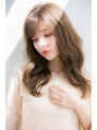 顔周りの後れ毛を作り、巻いた時も動きが出るようにカットしています。光に当たると透ける、柔らかいカラーに♪