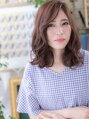【スタイルは★ブックマーク★が便利】肩のラインでハネさせたくせ毛風の外ハネふわミディ。少し長めの髪型が大人かわいいプラス大人力UP。斜めバングや厚めバングで目力強調したり、耳かけや小顔見せ前下がりもGOOD。(メイク担当:北浦和店 今野)