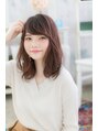 くせ毛風のゆるやかな毛流れがラフかわいい、好感度大のふわミディ。ボルドーやレッド系カラーでフェミニンな印象に。美白に見せてくれるのも嬉しい。斜めバングで目力強調したり、厚めバングやジグザグバングも個性的ガーリー。耳かけもお似合いです。