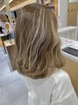 一回全体にハイライトをいれてからAVEDAカラーのベージュ系をいれています。柔らかい質感、透明感がでるカラーです。是非オススメです。
